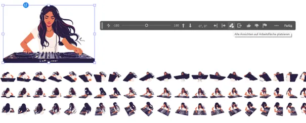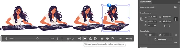 Und besonders praktisch: Ihr könnt mit den Schaltflächen Nächste gedrehte Ansicht rechts erstellen bzw. Nächste gedrehte Ansicht links erstellen gleich mehrere Kopien erstellen lassen, in denen das Objekt step-by-step gedreht wird.