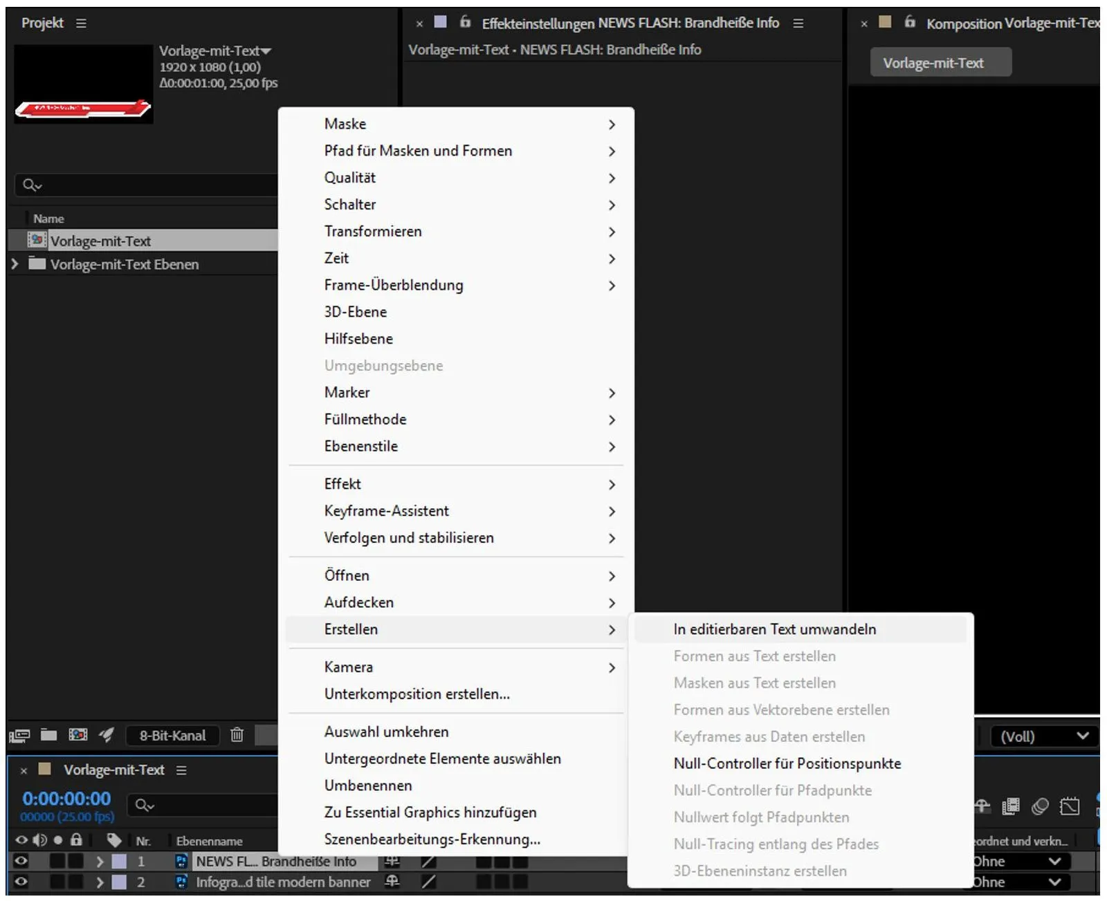 Jetzt verwandeln wir den Text unserer Photoshop-Ebene in einen editierbaren Text, um die Vorlage individuell anpassen zu können:
