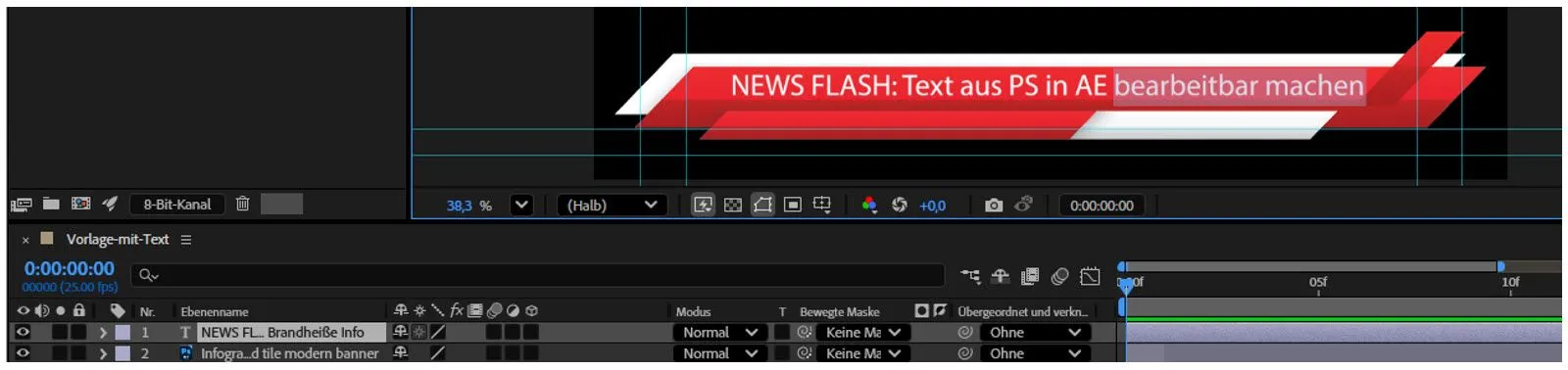 Texte in unseren importierten Vorlagen aus Photoshop sind allerdings zunächst statisch. Mit unserem Tipp könnt ihr nachträglich sogar die importierten Texte in After Effects editieren.