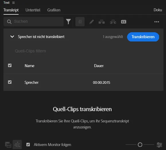 Mit der Funktion Sprache in Text können wir in Premiere Pro automatisch Transkripte erzeugen lassen und daraus zum Beispiel Untertitel erstellen.