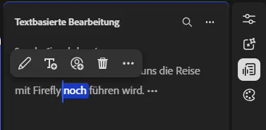 Wenn wir Textstellen markieren, werden uns Werkzeuge angeboten. Löschen wir Text, wird automatisch unser Videoclip geschnitten oder aufgeteilt!