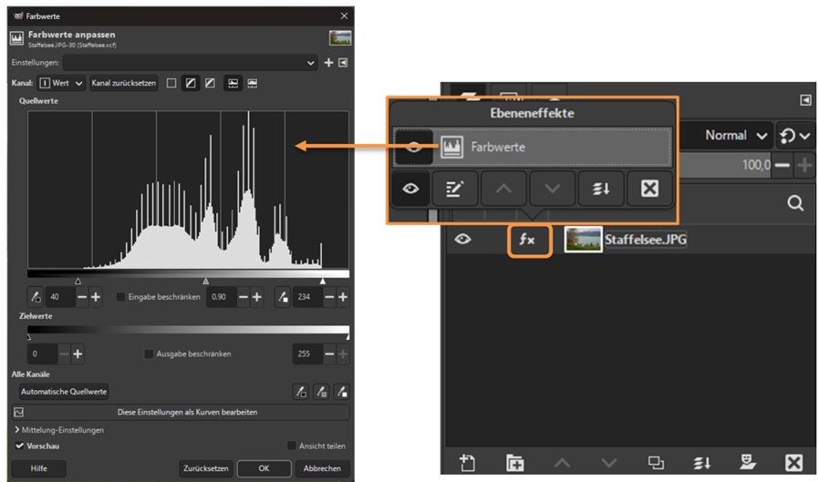Wir sehen uns das am Beispiel der Tonwertkorrektur an.