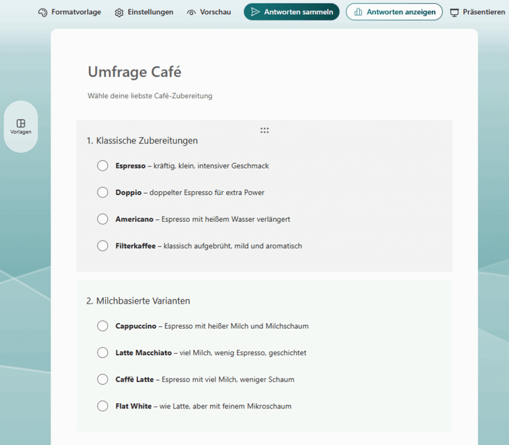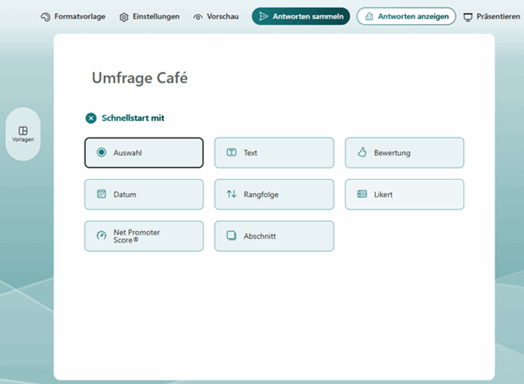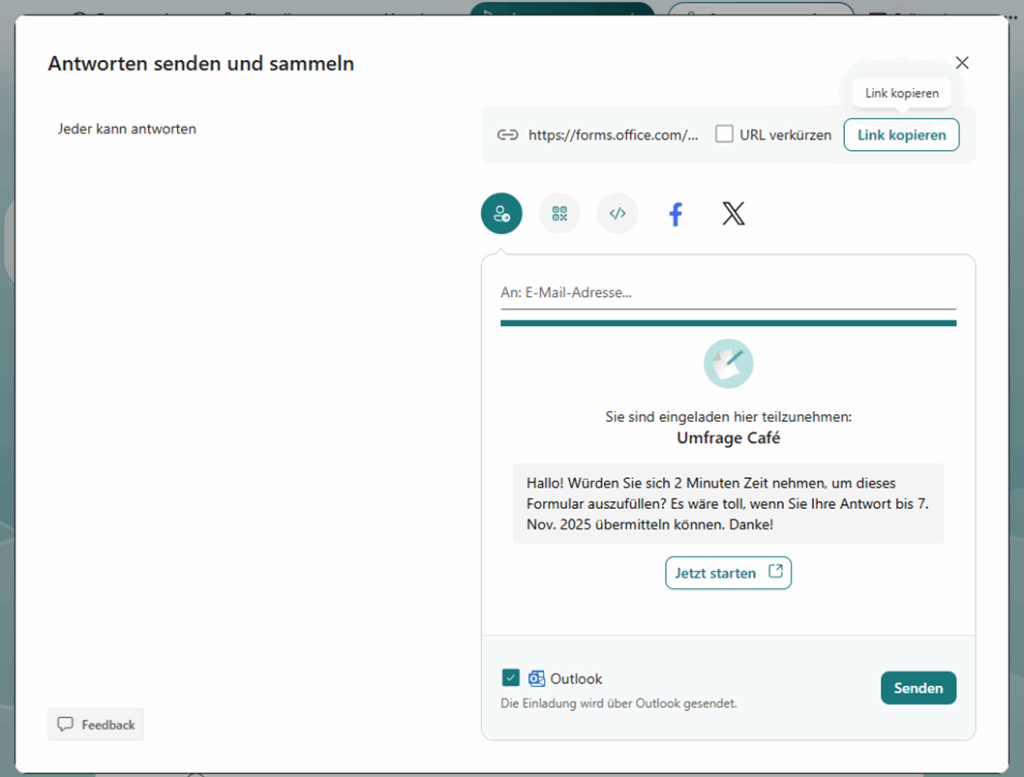 Über die Einstellungen legen wir ggf. noch Parameter wie Start- und Enddatum fest und starten anschließend unsere Umfrage mit der Schaltfläche Antworten sammeln.