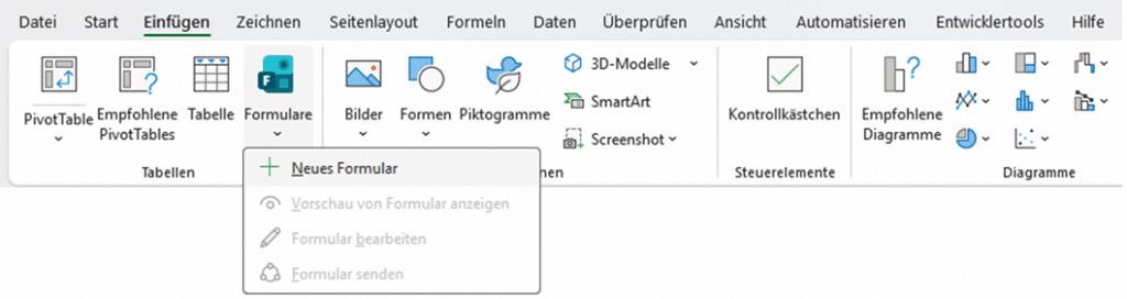 Im Menü Einfügen klicken wir auf die Schaltfläche Formulare.